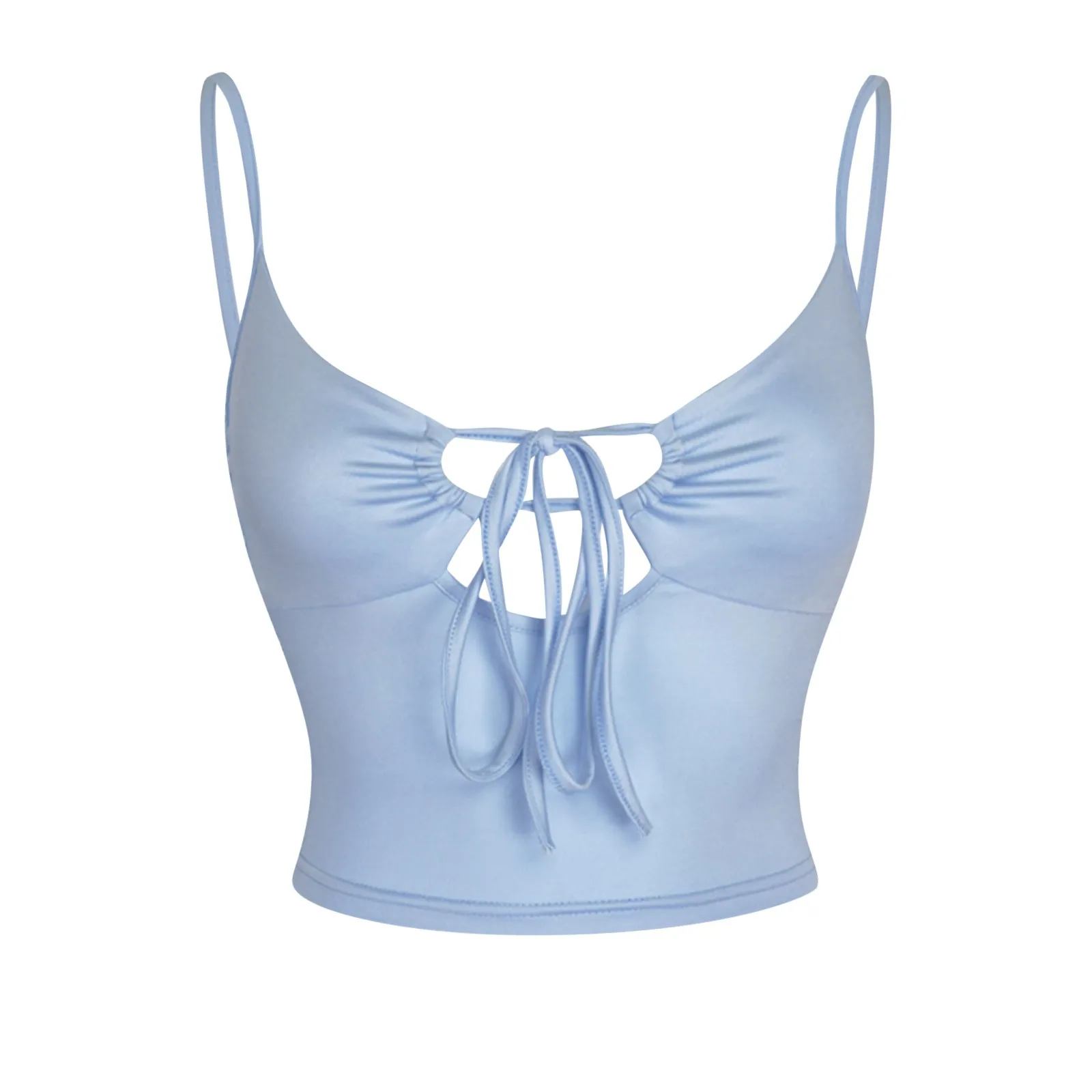 УКОРОЧЕННЫЙ ТОП Y2k, женская кофта, модный однотонный бандажный топ на завязках, летний сексуальный топ с открытым пупком, плиссированная полая