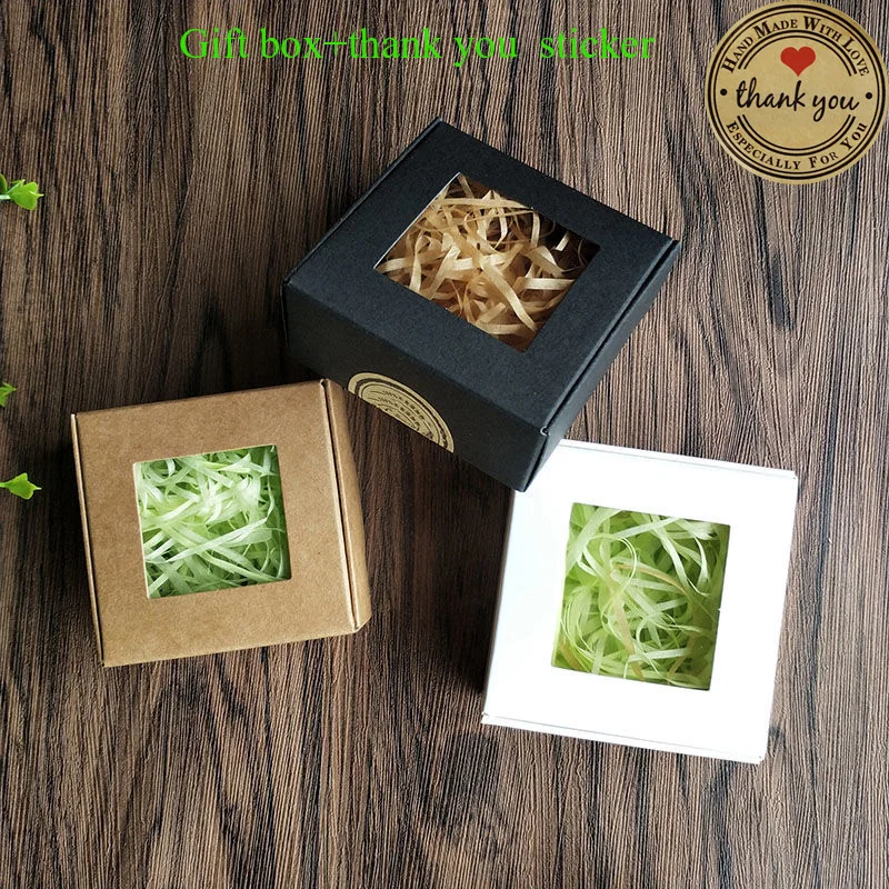 10 шт. маленькая Подарочная коробка с прозрачным окошком, упаковка из крафт-бумаги, мыльница наклейка спасибо для свадьбы, дня рождения, рождественской вечеринки