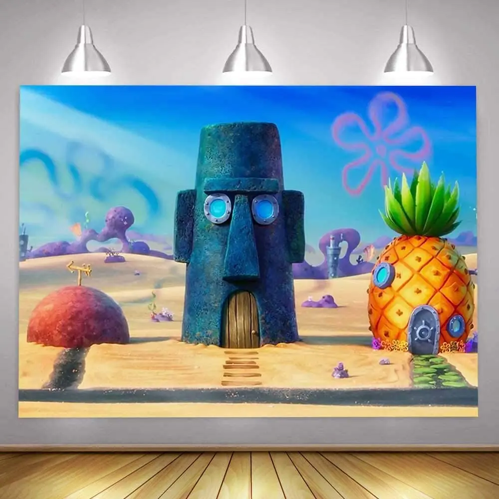 Подводная фотография задник мультфильм Боб тема вечевечерние НКА фон для новорожденных детей день рождения вечеринка украшение