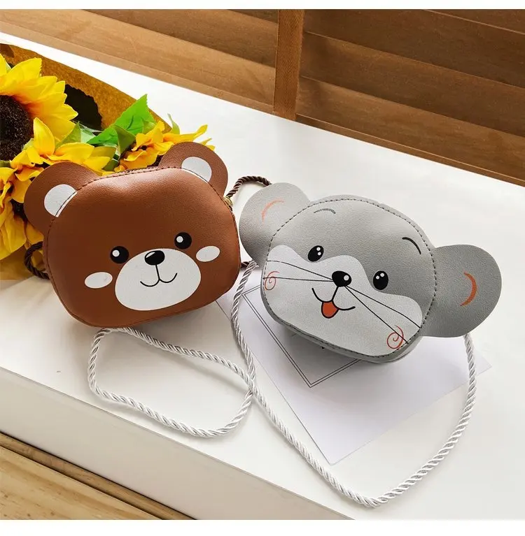 Новинка 2021, сумка через плечо с мультипликационным животным для маленьких девочек, детская сумка через плечо с милым котом, тигром, медведем, кошелек для монет, Сумки из искусственной кожи, сумочка