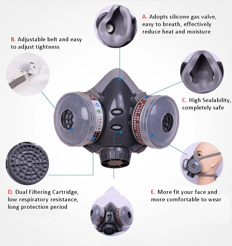Этот промышленный химический респиратор для автомобильной и промышленной окраски и органических паров низкой токсичности, предназначен для защиты вас от попадания пыли и мелких порошков. Он широко используется в промышленности, сельском хозяйстве и научно-исследовательских институтах, подверженных воздействию органических паров, бензола homologs, бензина, ацетона, дисульфида углерода, эфира и других сотрудников. ● Абсолютно новый и высококачественный ● Маска для лица с двумя фильтрующими картриджами, дыхательный клапан ● С широким видением стекла Анти-туман, анти-царапины, ударопрочный, анти-всплеск, пыленепроницаемый, ветронепроницаемый ● Корпус маски изготовлен из высококачественного материала, который не образуется даже после экструзии, более удобен в носке и подходит для вашего лица ●Adjustable 2-точечный ремень на голову, легко устанавливать и регулировать, что гарантирует удобство при носке и подходит для большинства людей ● Высококачественный дыхательный клапан и использует технологию двойного запечатывания для улучшения герметичности ● Подходит для профилактических органических паров, бензола homologs, бензина, ацетона, дисульфида углерода и т. д. ● Сменные углеродные частицы, 70 г Углеродные Частицы могут заполнить 1 фильтрующий картридж. ● Может использоваться для окраски, распыления пестицидов, химической промышленности, фабрики, горнодобывающей промышленности, лаборатории, установки дома, ежедневной защиты от дымки ● Вид Примечание: Если вы почувствуете специфический запах после использования в течение определенного периода, это означает, что частицы углерода насыщены, вам нужно заменить на новые частицы углерода.