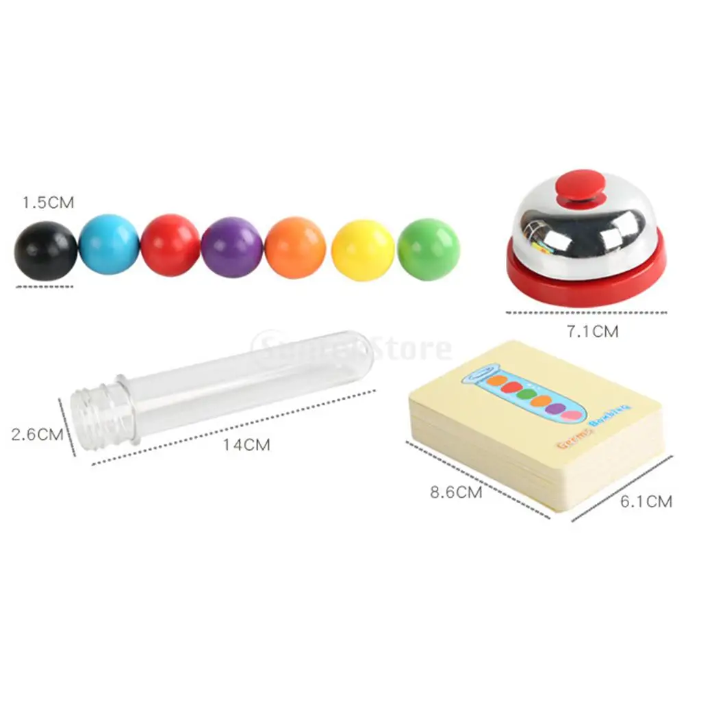 Шарик: 1,5 см/0,59 дюймаКолокольчика: 7,1 см/2,79 дюймаТрубка: 14x2,6 см/5.51x1дюймКарты: 6,1x8,6 см/2.4x3.38inchМатериал: Деревянный
