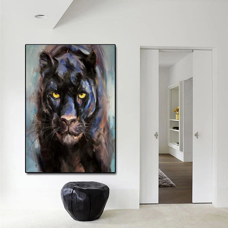 Современная живопись, художественная пигментная живопись, Черная пантера, Картина на холсте в скандинавском стиле, комнатная Настенная картина (без рамки)
