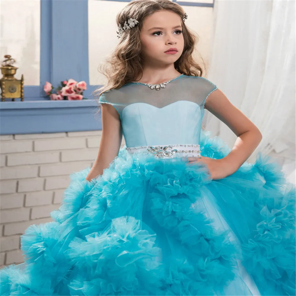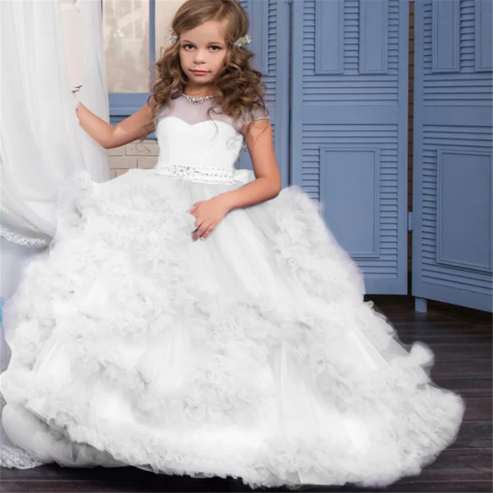 Кружевное бальное платье с цветочным принтом, для девочек, для первого причастия