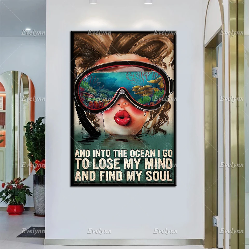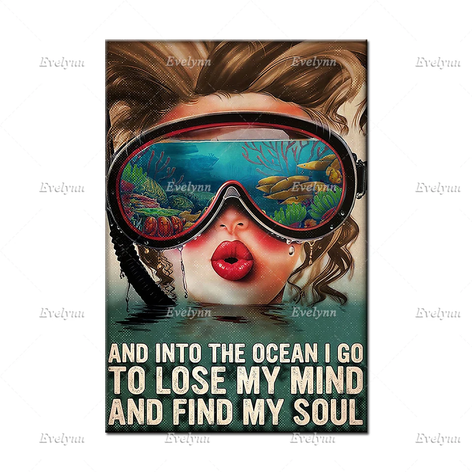 Плакат с аквалангом, девушкой для дайвинга, в океан, я иду, чтобы сойти с ума, настенные художественные принты, Декор для дома, холст, уникальный подарок