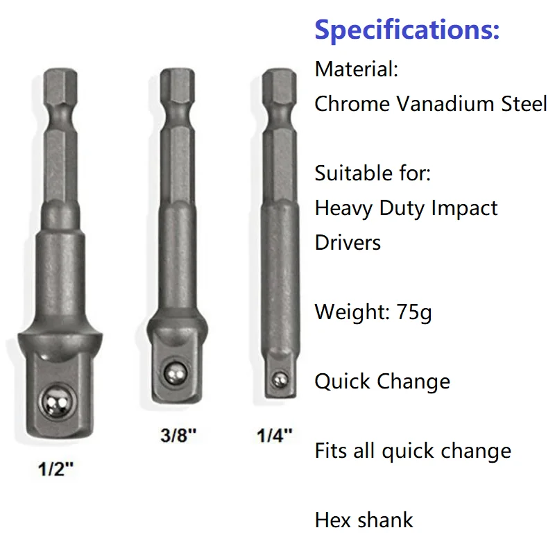 3 шт. 14 "38" 12 "гнездо адаптера набор сверл с шестигранным хвостовиком ключ, дюймовый стандарт диска Мощность буровая удлинительная бит для адаптера переменного тока Набор отверток Инструменты