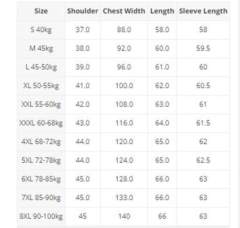 Пожалуйста, обратите внимание, что:?1. Все размеры указаны в таблице для самых больших внешних размеров одежды, но не для размера вашего тела.?2. Наш товар Азиатский Размер, работает меньше, чем европейский или американский, пожалуйста, закажите 1-2 размера вверх или подтвердите свои измерения перед заказом.?3. Все измерения указаны в см (1 см = 0.39in клопов на руку, ширина 1 дюйм = 2,54 см;).Возможна разница в 2-3 см в соответствии с измерениями вручную. Пожалуйста, внимательно проверьте таблицу размеров перед покупкой товара.?4. Из-за того, что светильник и экран, должен быть допустима разница в цвете s-светильник. Спасибо за понимание!Предложение: выберите размер в соответствии с вашим весом.