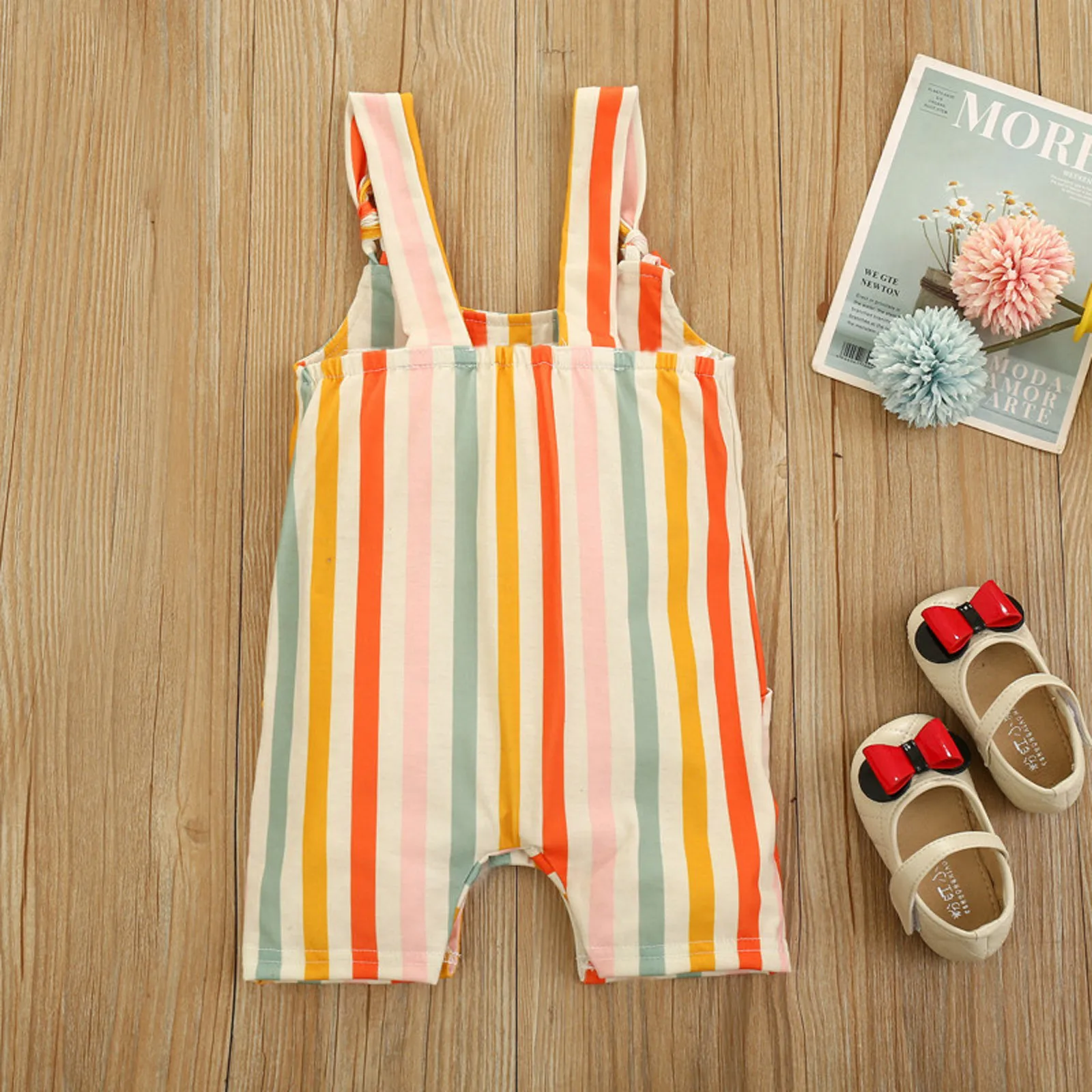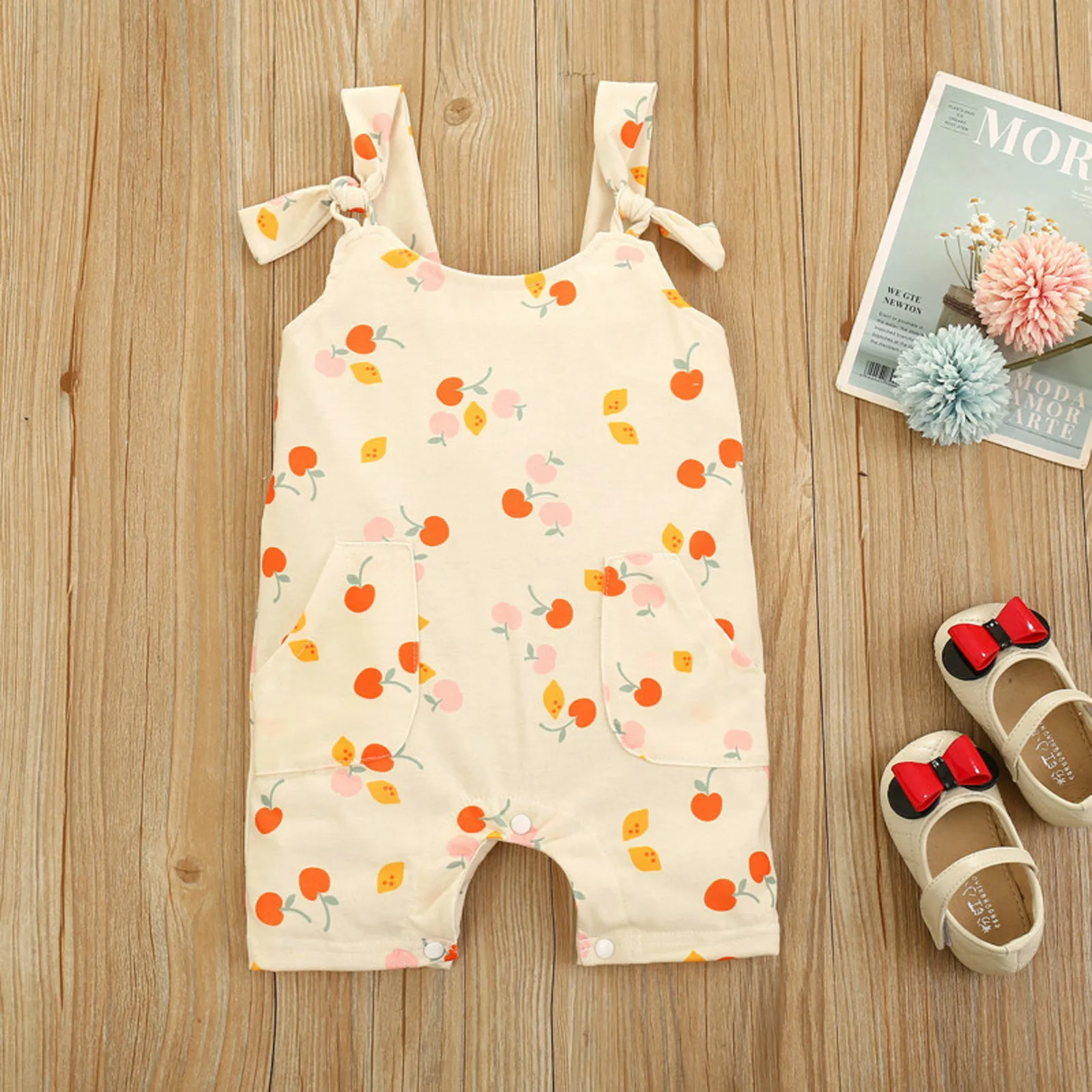 Комбинезон без рукавов для новорожденных девочек, комбинезон в полоску с принтом фруктов, комбинезон, боди для малышей, лето