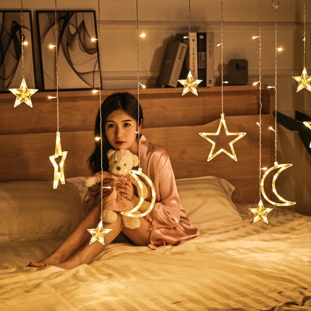 3,5 м луна звезда занавес светильник LED гирлянда лампа Graland Gypsophila Рождество Новый год Рамадан домашний праздник украшение окна