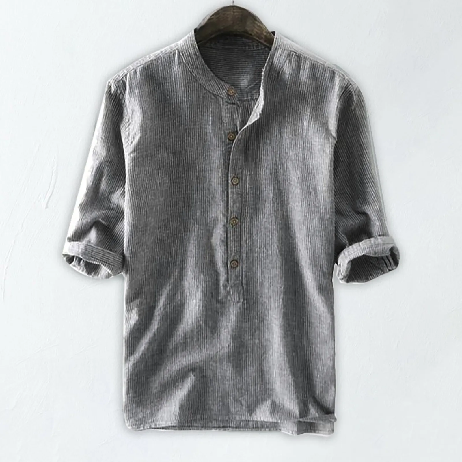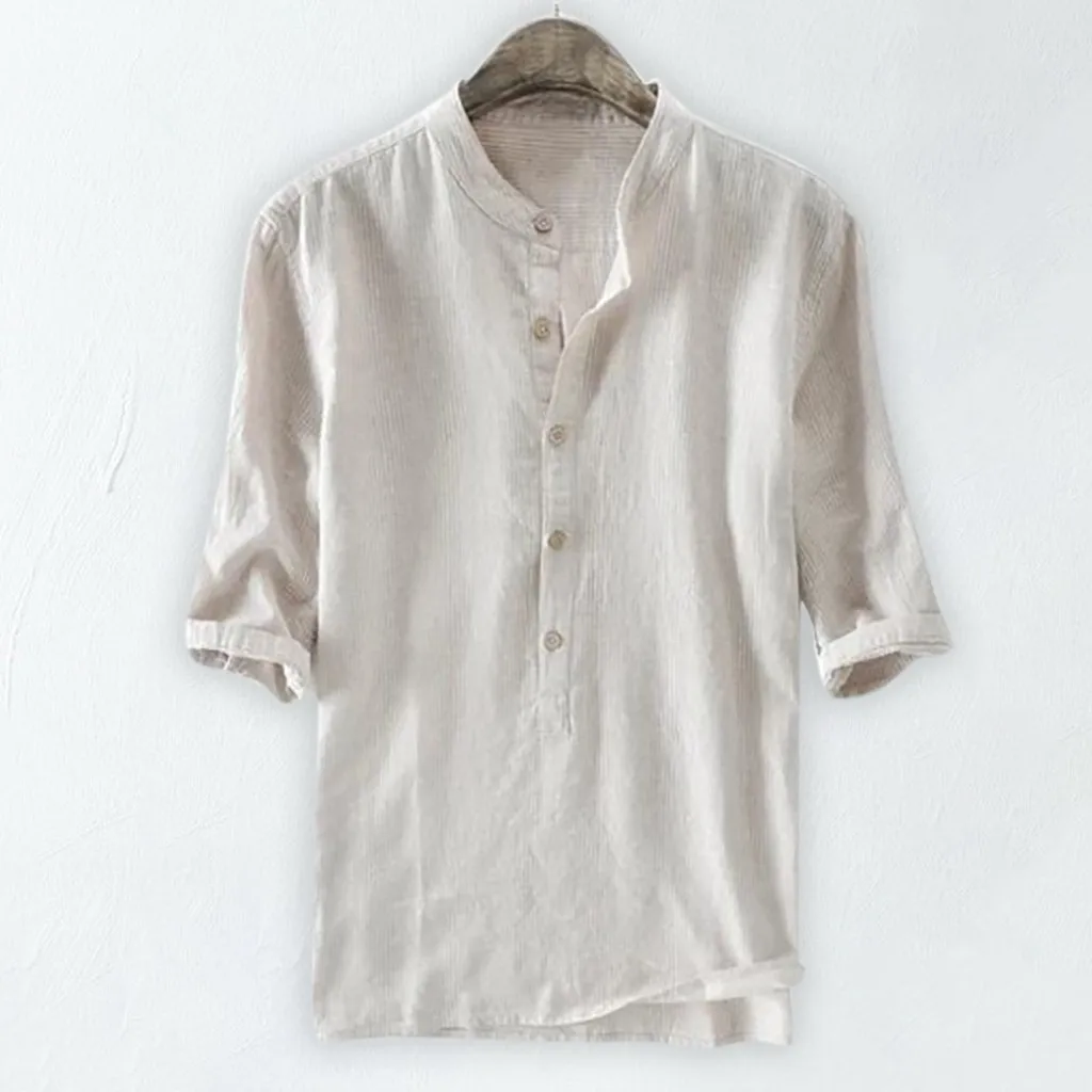 Рубашка мужская хлопково-Льняная однотонная, домашняя одежда, топ с рукавом до локтя в стиле ретро, на пуговицах, размера плюс, на лето