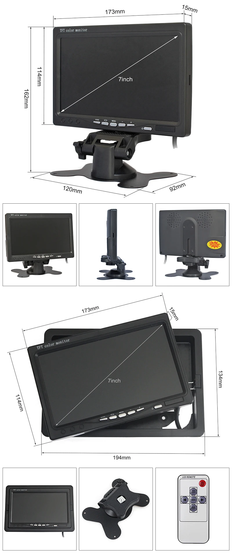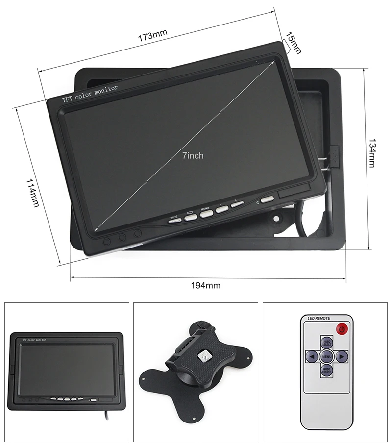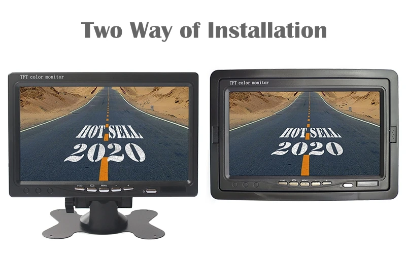 Перед вами монитор AHD 7 "с разрешением 800x480, с установкой кронштейна. Возьмите с двумя 4-контактными/RCA видеовходами, может работать с камерами заднего вида AHD и камерами видеонаблюдения AHD.