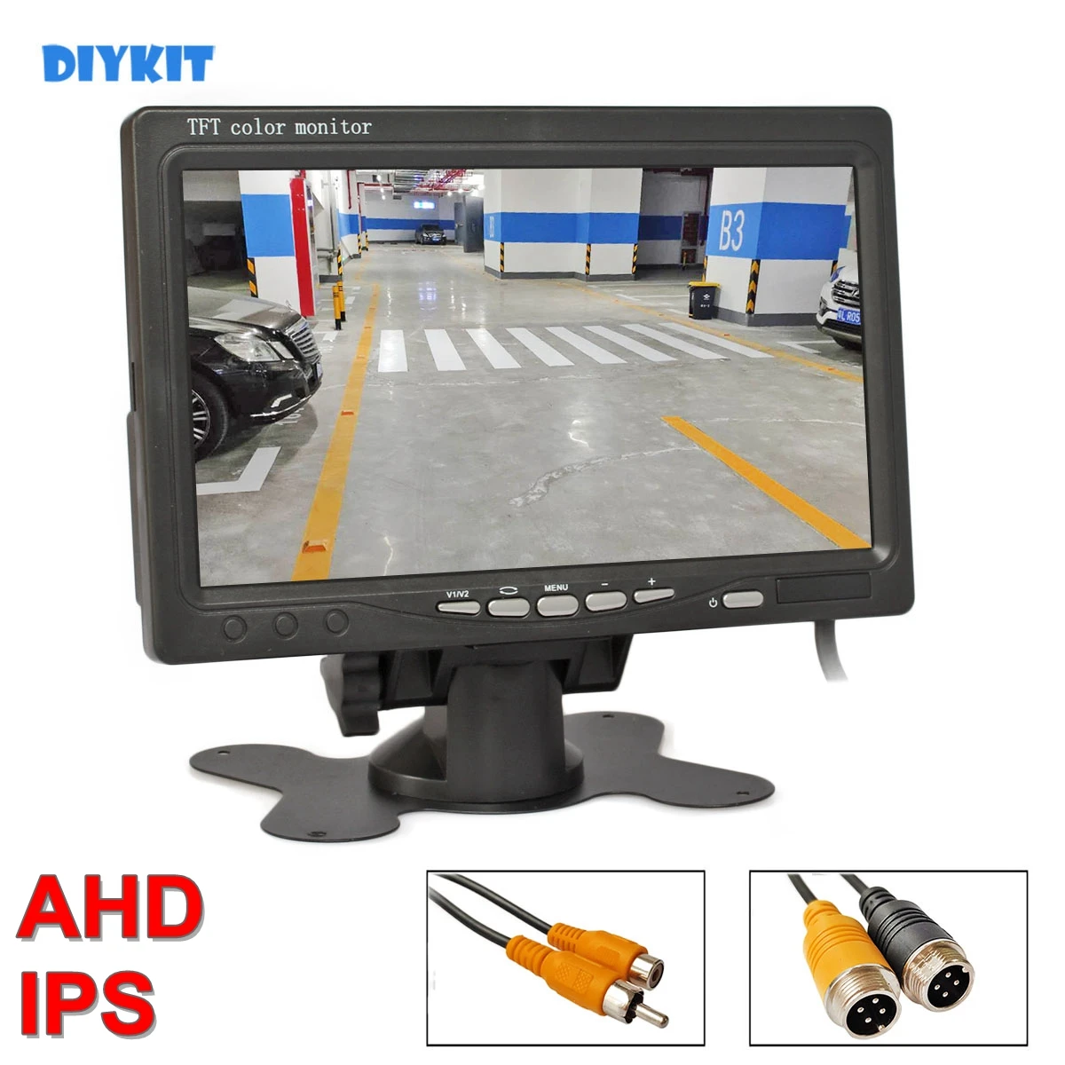 Автомобильный HD-монитор DIYKIT, AHD 7 "IPS LCD, автомобильный монитор заднего вида, макс. поддержка 1080P, AHD-камера, 2 x 4-контактный видеовход
