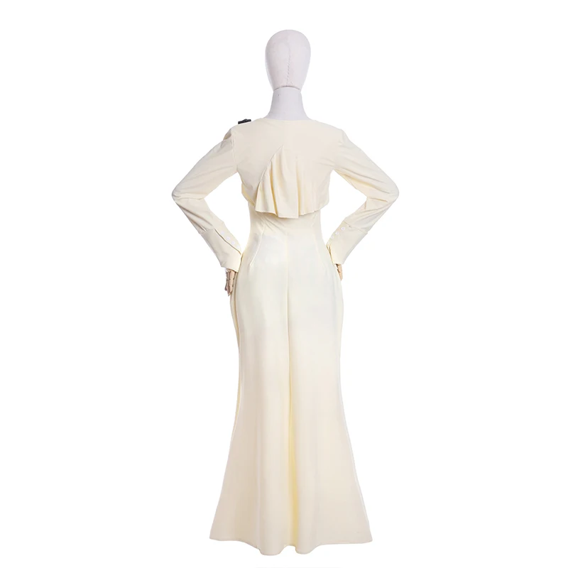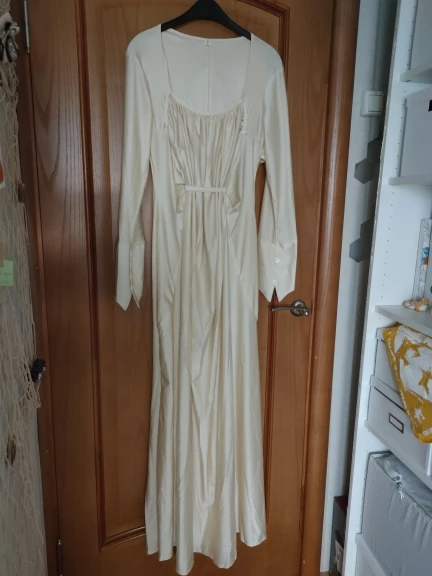 Это платье самое красивое и идеальное! Он имеет все точные детали оригинального платья, по размеру он идеален! Если вы пухленький, не волнуйтесь, ткань сильно растягивается и очень хорошо прилипает к вашему телу, Я вешу 75 килограммов, и я довольно изогнутый и крутой, и я боялся выбрать размер S/M, и поверьте, что размер измерений очень хороший, в дополнение к тому, что ткань сильно растягивается. S/M может оставаться до XL без проблем, так как я L, и он подходит мне идеально, как перчатка. Качество премиум-класса⭐⭐⭐⭐⭐Это выглядит как гораздо более дорогое платье, ткань слишком управляемая и не чешется и не плохо пахнет, все идеально. Цвет слоновой кости замечательный. Очень надежный продавец. Примечание: у меня не так много груди, и платье все еще подходит мне, вырез сильно растягивается, и они хорошо подходят людям с маленькой или большой грудью.