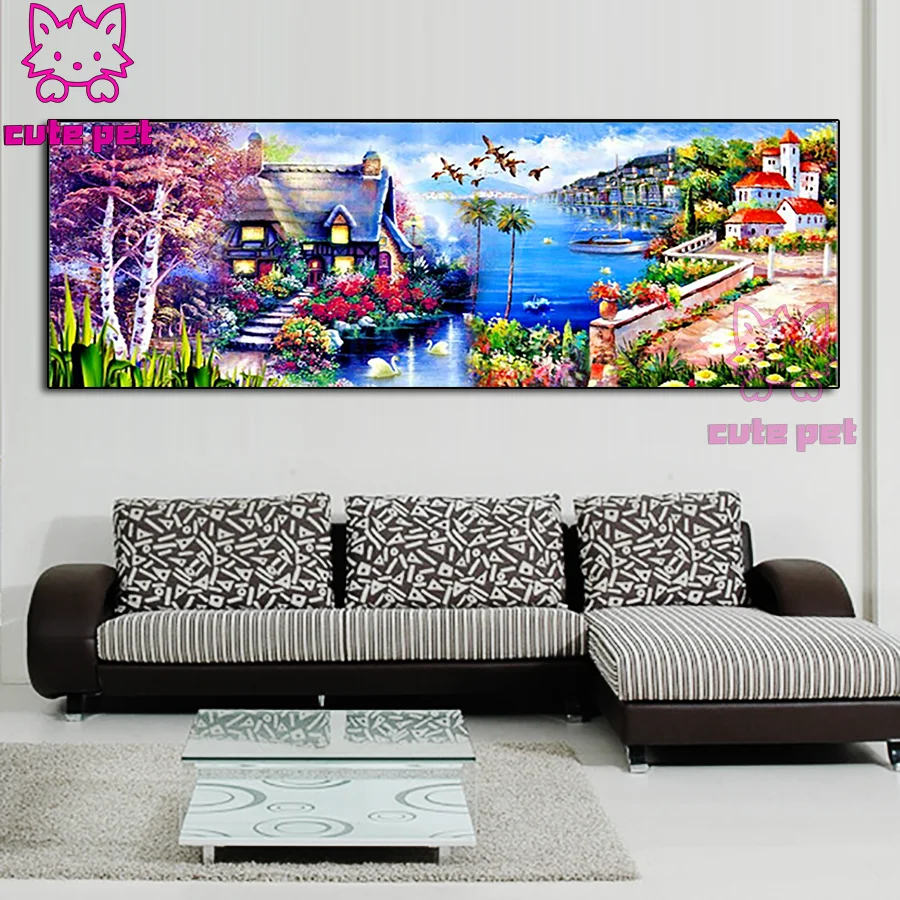 Алмазная живопись, пейзаж 5D, своими руками, строительный дом, квад...