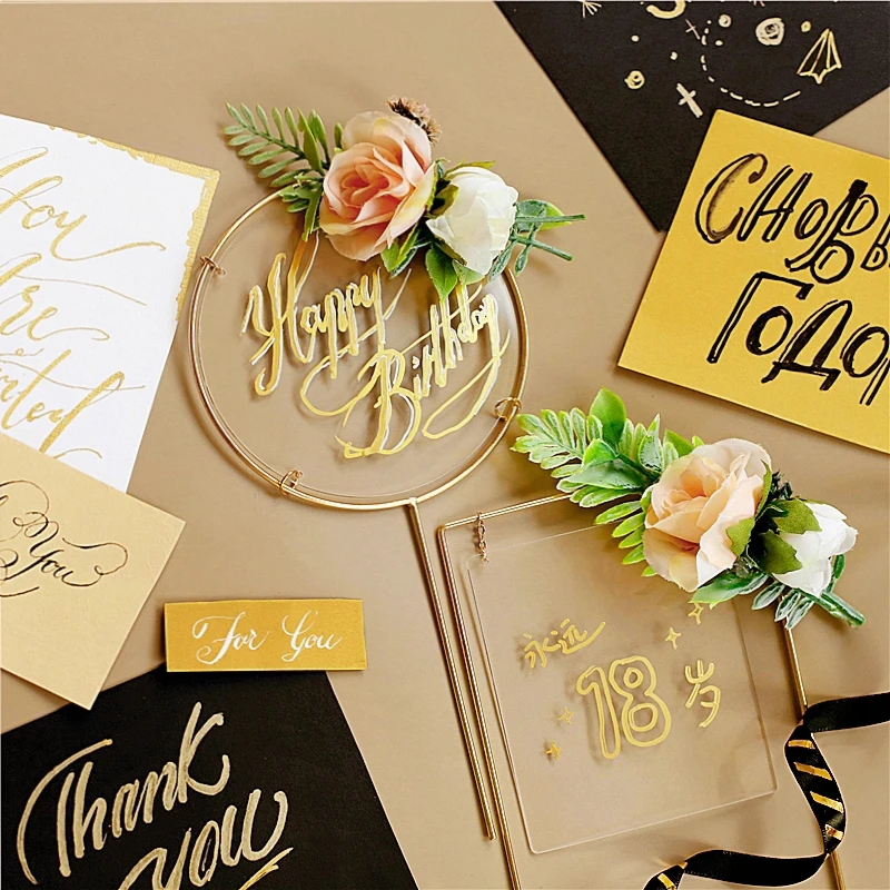 Feliz cumpleaos. Золотой, серебряный, черный Espaol акриловый Топпе...