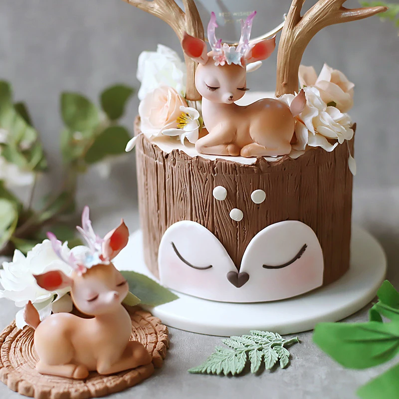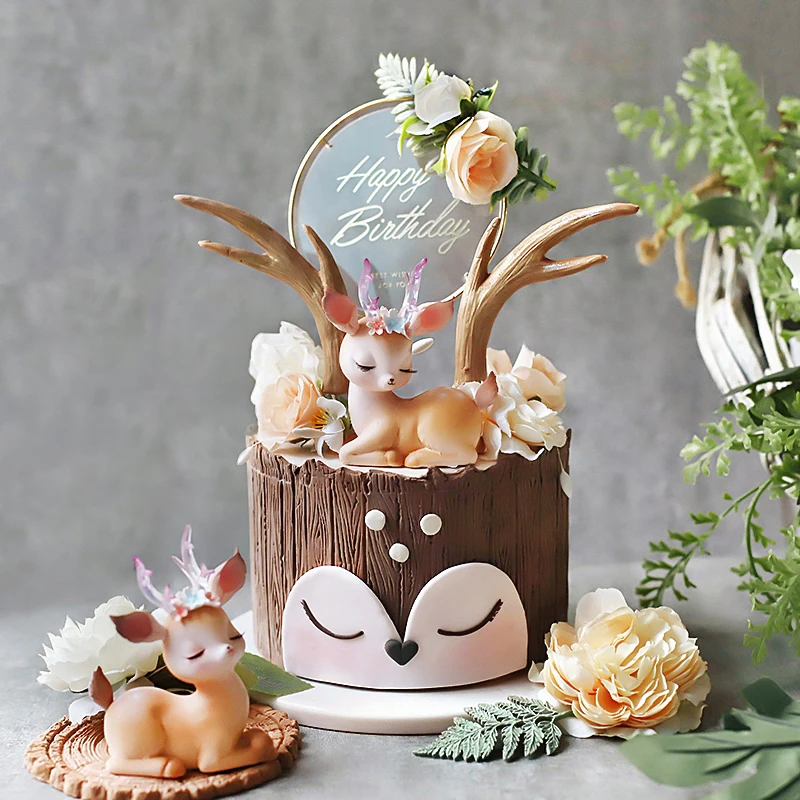 Искусственные цветы в лесном стиле, олень из смолы, железные акриловые топперы для торта, украшение для вечеринки в честь Дня Рождения, товары для выпечки