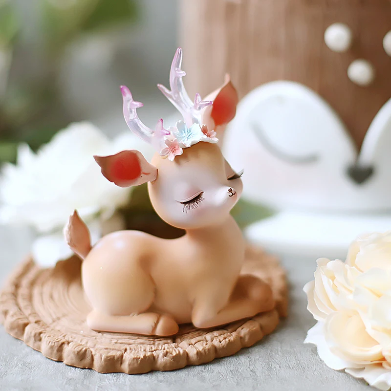 Розовые полимерные олени в лесном стиле, искусственные цветы, желез...
