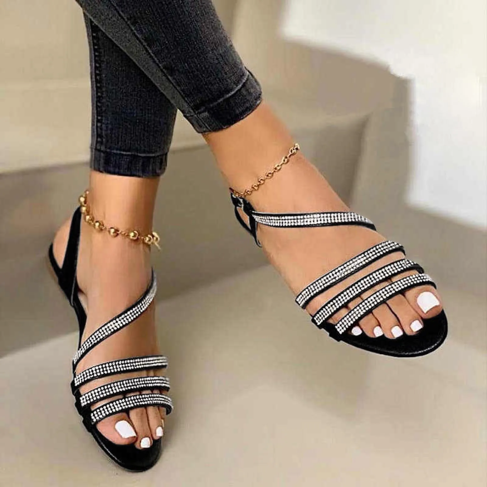 Блестящие женские сандалии с ремешком и пряжкой; Женские летние дышащие сандалии-стразы; Новинка 2021 года; Женская обувь; Zapatos Mujer