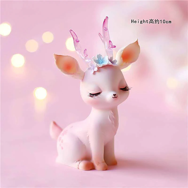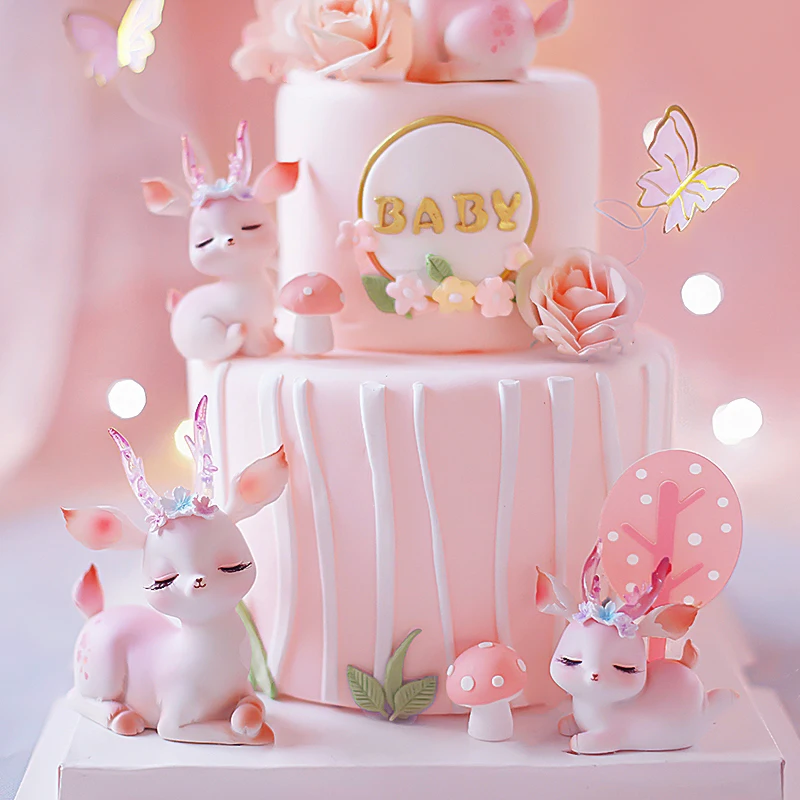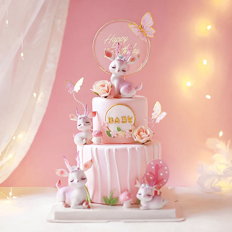 Розовые полимерные олени в лесном стиле, искусственные цветы, железные акриловые топперы для торта, украшения для дня рождения, товары для выпечки