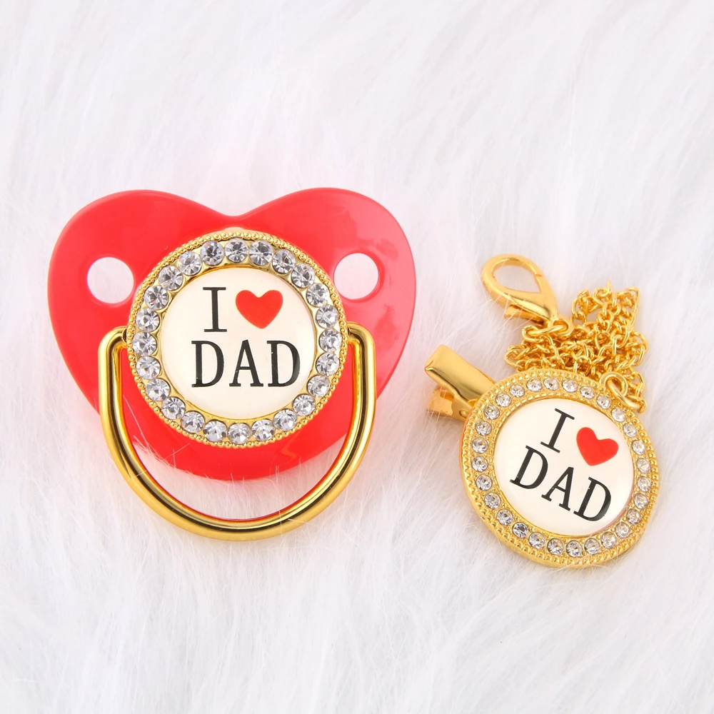 Серебристая Детская Соска с зажимом I Love Papa Bling, соска для мл...