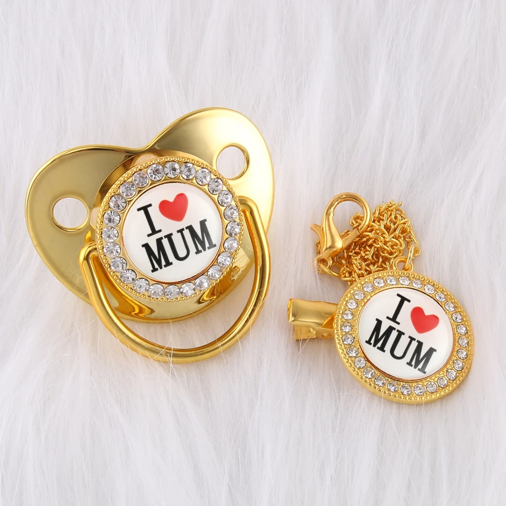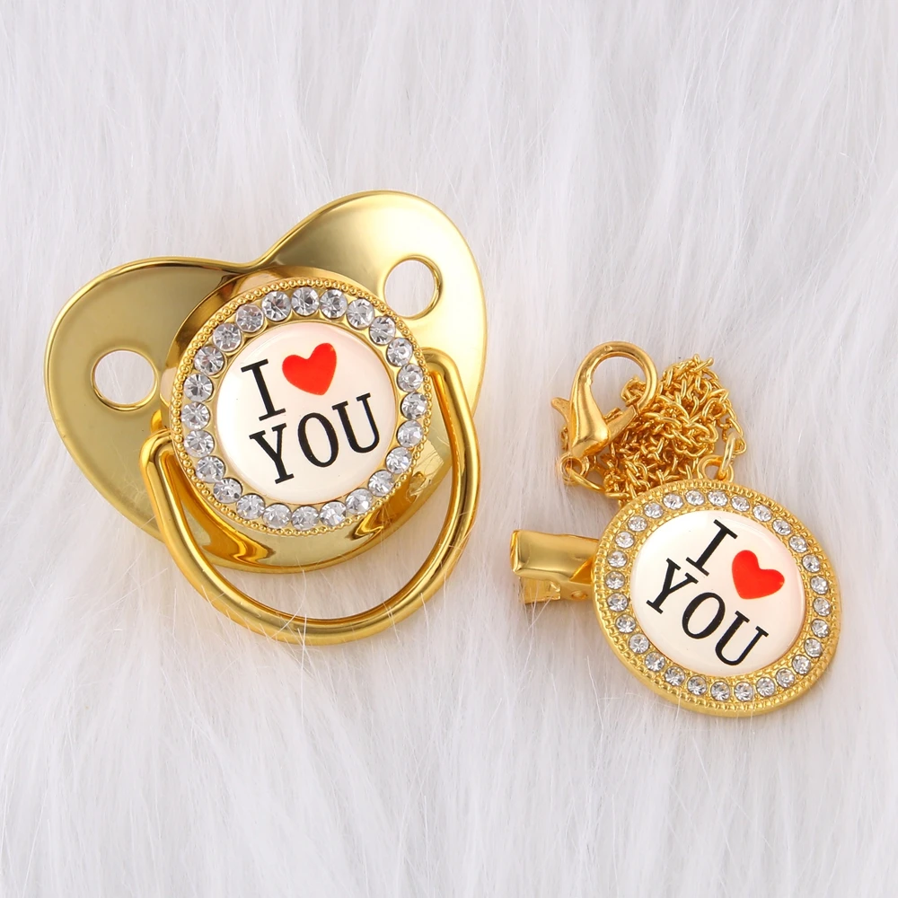 Стильный, с блеском золота соски-пустышки с Стразы 26 букв с гравир...