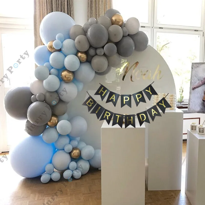 Macaron синий серый шар гирлянда арочный комплект хромовые металлические золотые шары С Днем Рождения флаг с надписью Baby Shower Boy Свадебный декор