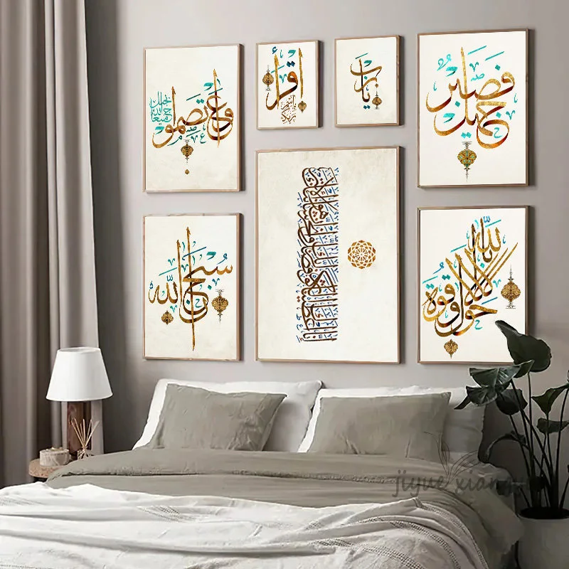 Исламское настенное искусство, арабская каллиграфия, Аллах, цитаты, Коран, принты, мусульманский постер, Картина на холсте для гостиной, спальни, украшение