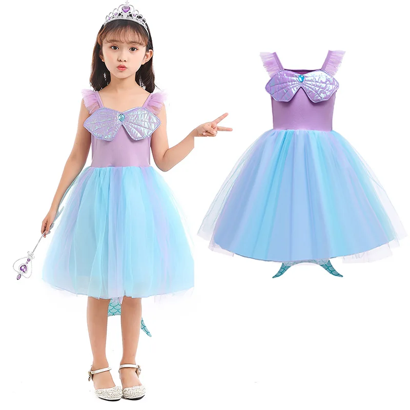 Платье принцессы для девочек; Платье Русалочки для девочек; Нарядный костюм на Хэллоуин; Карнавальная одежда для маленьких девочек на День рождения; От 3 до 8 лет