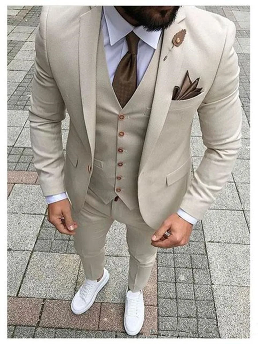 Новое поступление смокинг для жениха с одной кнопкой мужские костюмы для свадьбывыпускного вечера Лучший блейзер (пиджак + брюки + жилет + галстук) C205