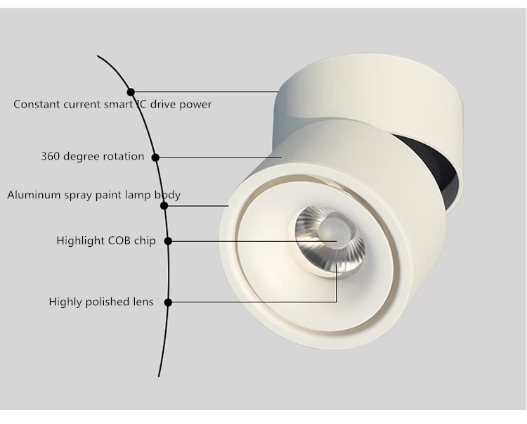 Складной потолочный светильник, 85-240 в перем. Тока, светодиодный потолочный светильник с регулируемой яркостью, вращающийся на 360 градусов, 7 Вт, 10 Вт, 12 Вт, 15 Вт