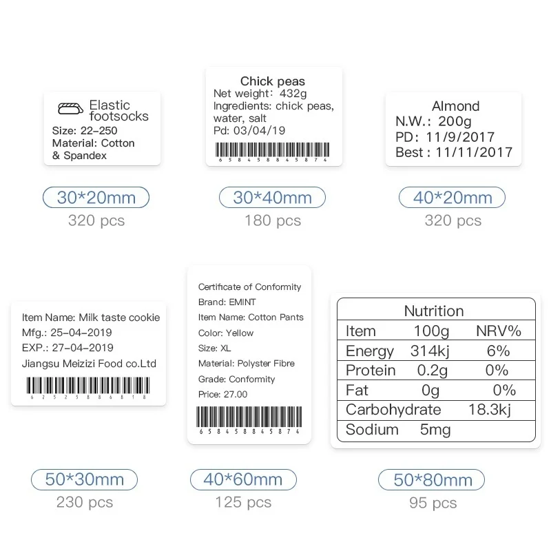 Niimbot B21, несколько размеров, пустая белая прозрачная термоэтике...