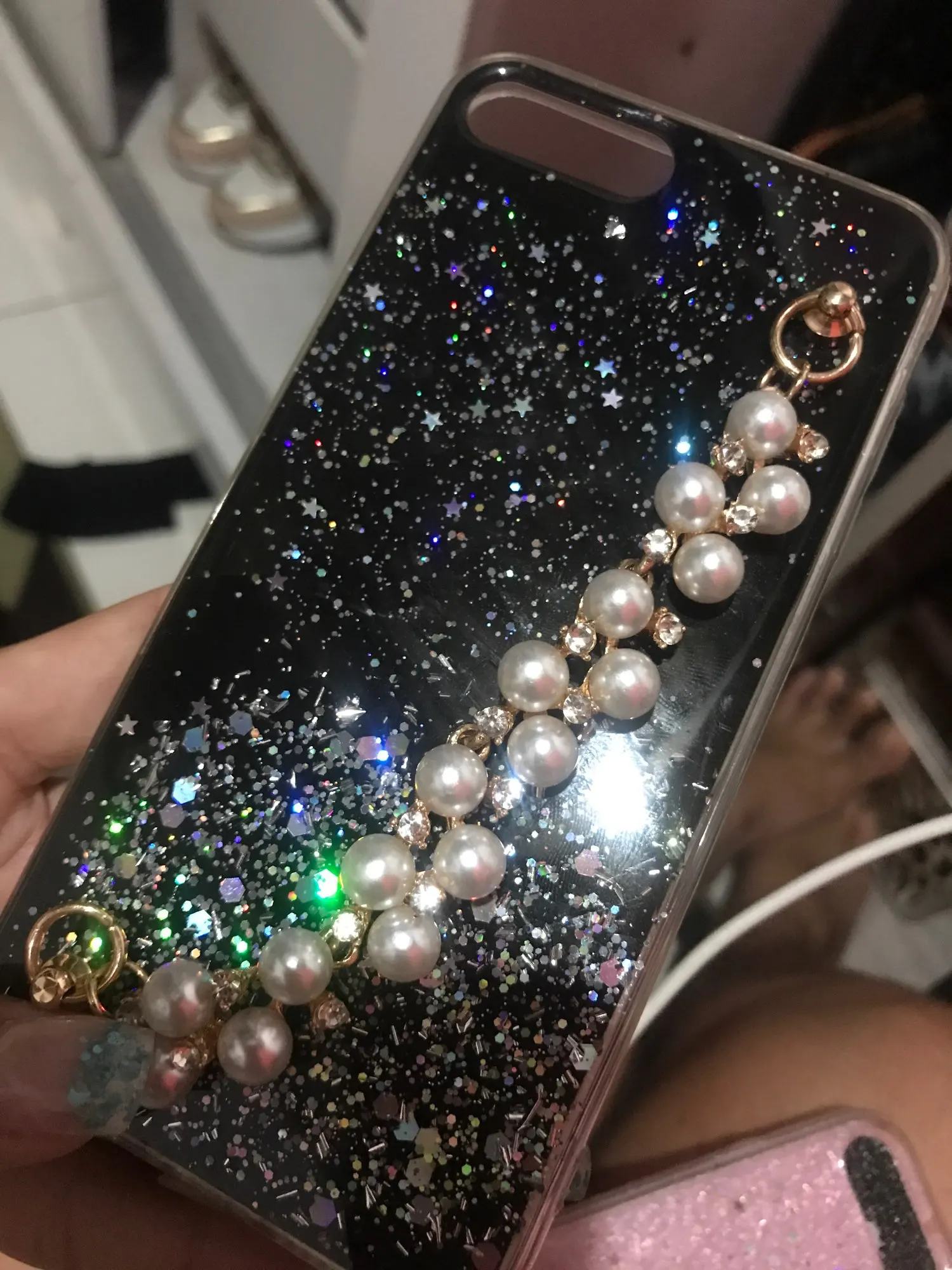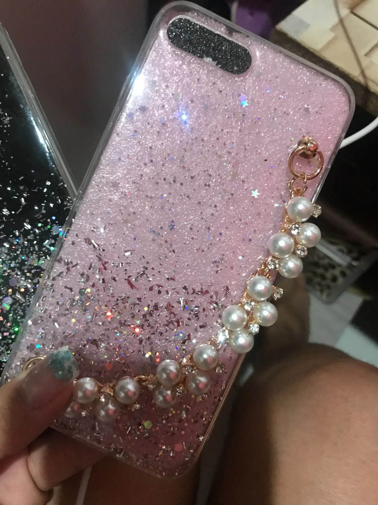 Чехол-накладка для iPhone 11, 12, 13 Pro Max, XS, X, XR, 7, 8, 6, 6s Plus, mini, SE 2020, с жемчужным браслетом, противоударный, блестящий