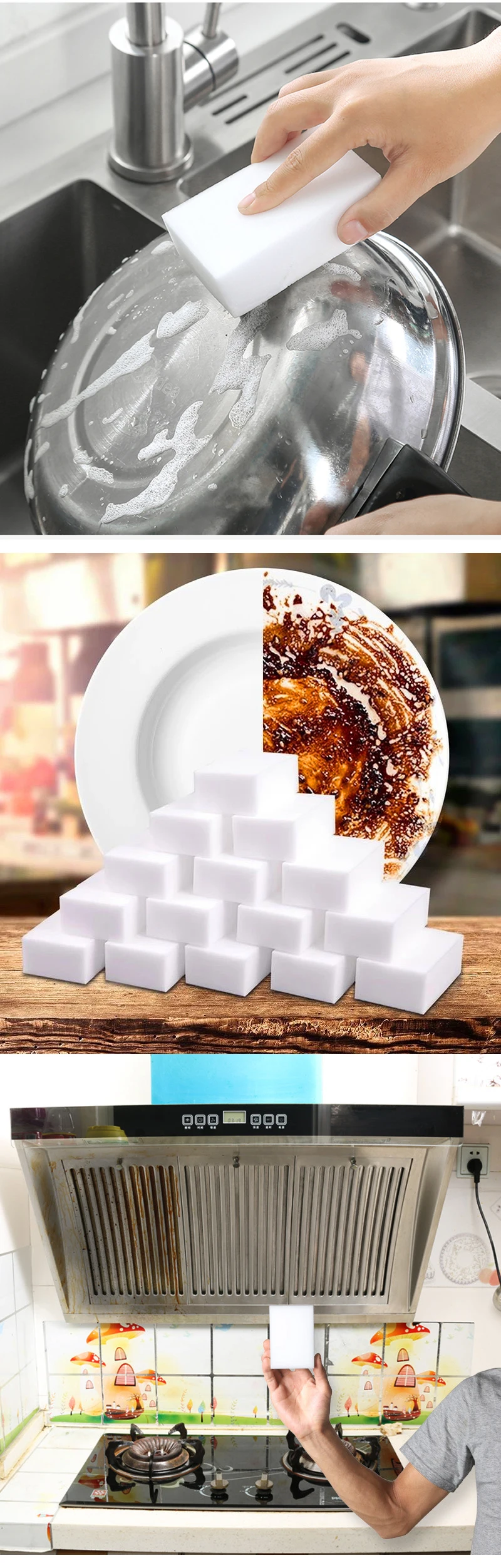 100 шт меламиновая губка, волшебная губка для ластика, предметы домашнего обихода, Чистящая губка для кухни, инструменты для уборки ванной комнаты