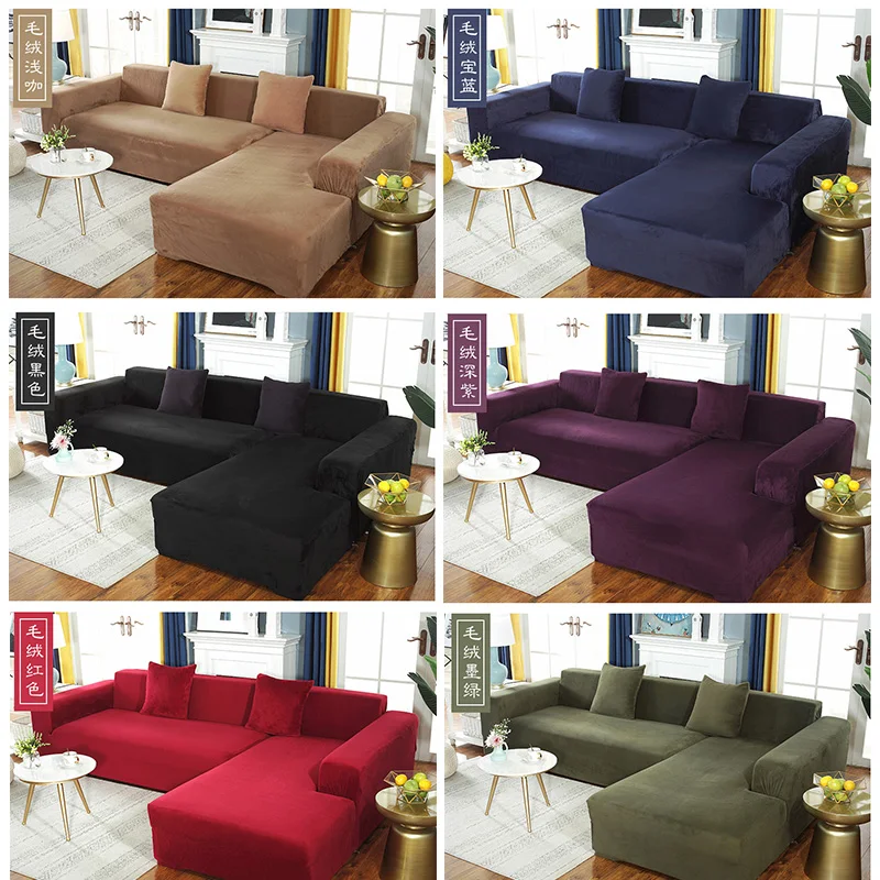 Плюшевый бархатный L-образный чехол для дивана, эластичный Чехол для мебели в гостиную, чехол для шезлонг, угловой диван, растягивающийся чехол