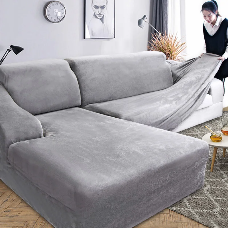 Чехол для дивана бархатный плюшевый L-образный эластичный для гостиной