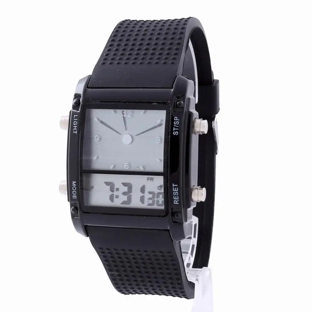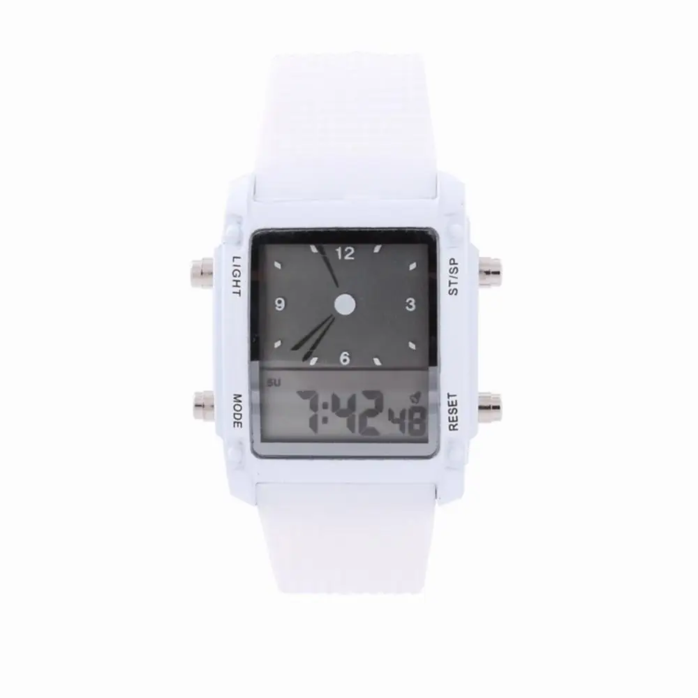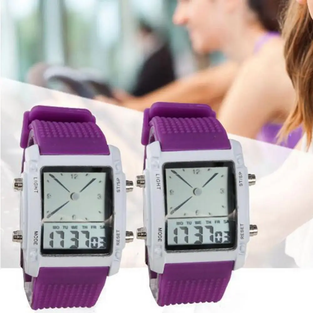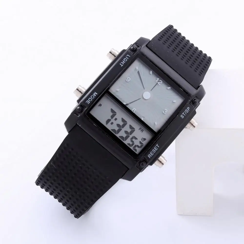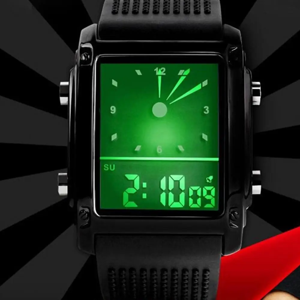 Светодиодсветодиодный часы унисекс, прямоугольные, с двойным дисплеем, светящиеся, спортивные, электронные, наручные часы с пряжкой, прямоугольные, цифровые часы