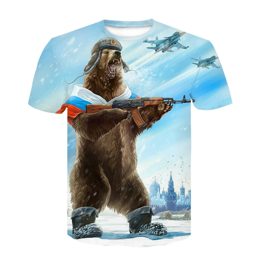 Мужская одежда, 2021, русская футболка, рубашки с медведем, футболка на военную тематику, военная одежда, футболки, топы, мужские футболки с 3D принтом, забавные