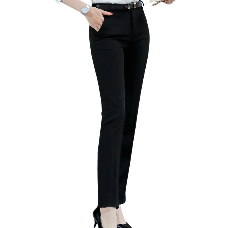 Полная длина, профессиональные деловые формальные брюки, женские брюки, для девушек, тонкая женская рабочая одежда для офиса 5XL размера плюс, одежда черного, темно-синего, темно-серого, серый, светильник