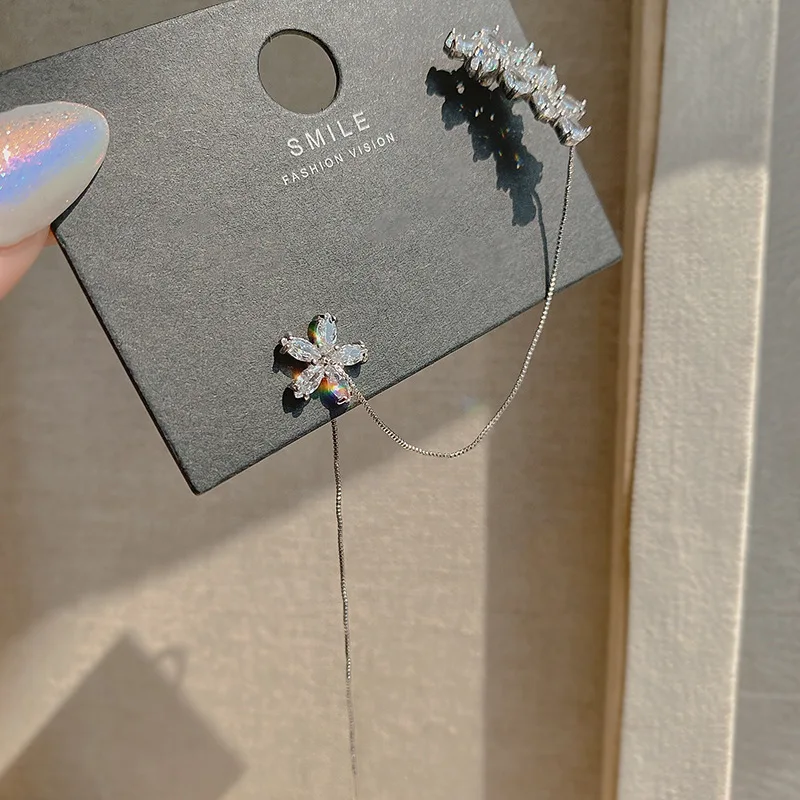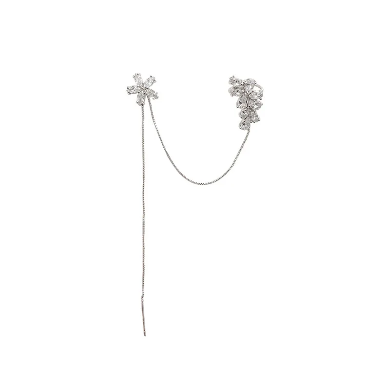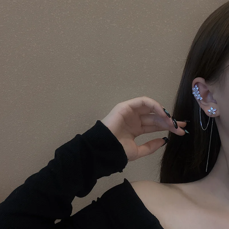 1 шт. серьги ювелирные изделия Модные индивидуальные циркониевые клипсы для ушей длинные серьги с кристаллами цветком кисточками манжеты серьги-гвоздики для женщин 2021