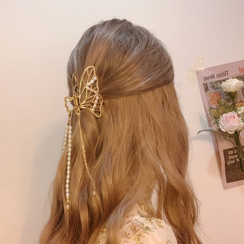 2021 летние металлические золотые новые стильные Висячие большие заколки для волос с бабочкой для женщин и девушек дизайнерские модные заколки для волос