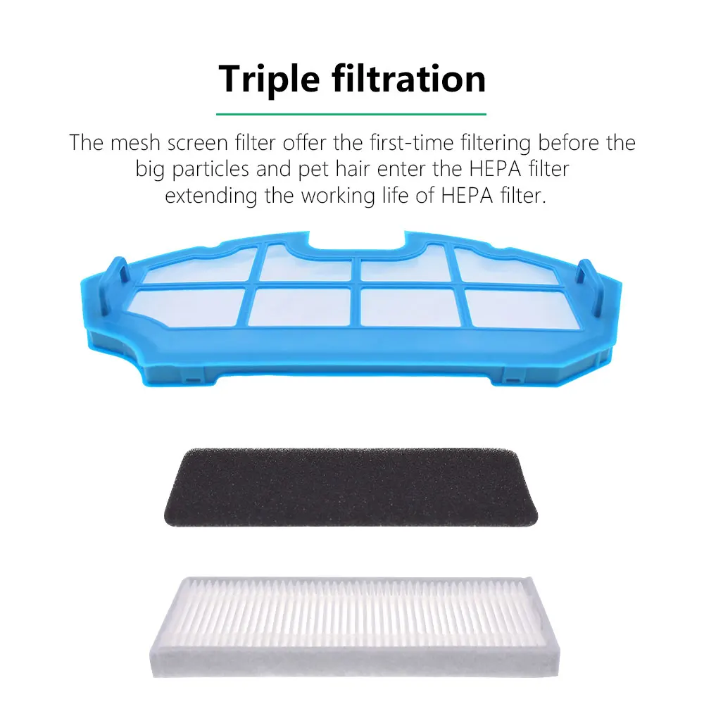 1) фильтр HEPA-style использует HEPA материал E12 и улавливает до 99.5% пыли, аллергенов и частиц.2), превосходный выбор волос домашних животных, грязи, пыли и мусора и работает на типах пола-лиственных пород, ковров и плитки.3) боковая щетка дает вам дополнительную гарантию, что вы получаете прямо против стен и глубоко в углы для превосходного покрытия очистки.4) детали и аксессуары изготовлены из экологически чистых материалов и почти не требуют технического обслуживания.5) чтобы ваш робот работал на пике производительности, рекомендуется заменять детали каждые 2-3 месяца.6) его легко заменить и установить на робот-пылесос.7), доставка с коричневой коробкой, чтобы предотвратить повреждение при транспортировке.