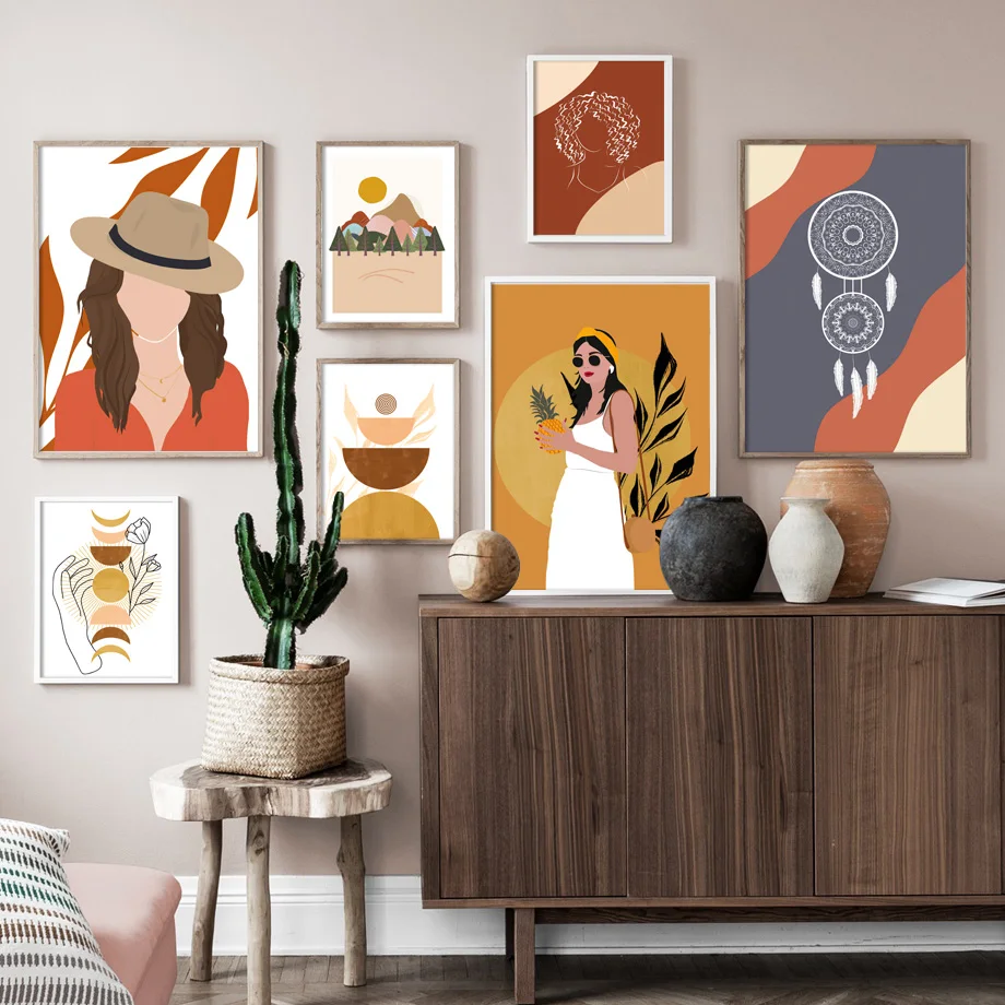 Абстрактная Настенная картина в стиле бохо, постеры и принты в скан...