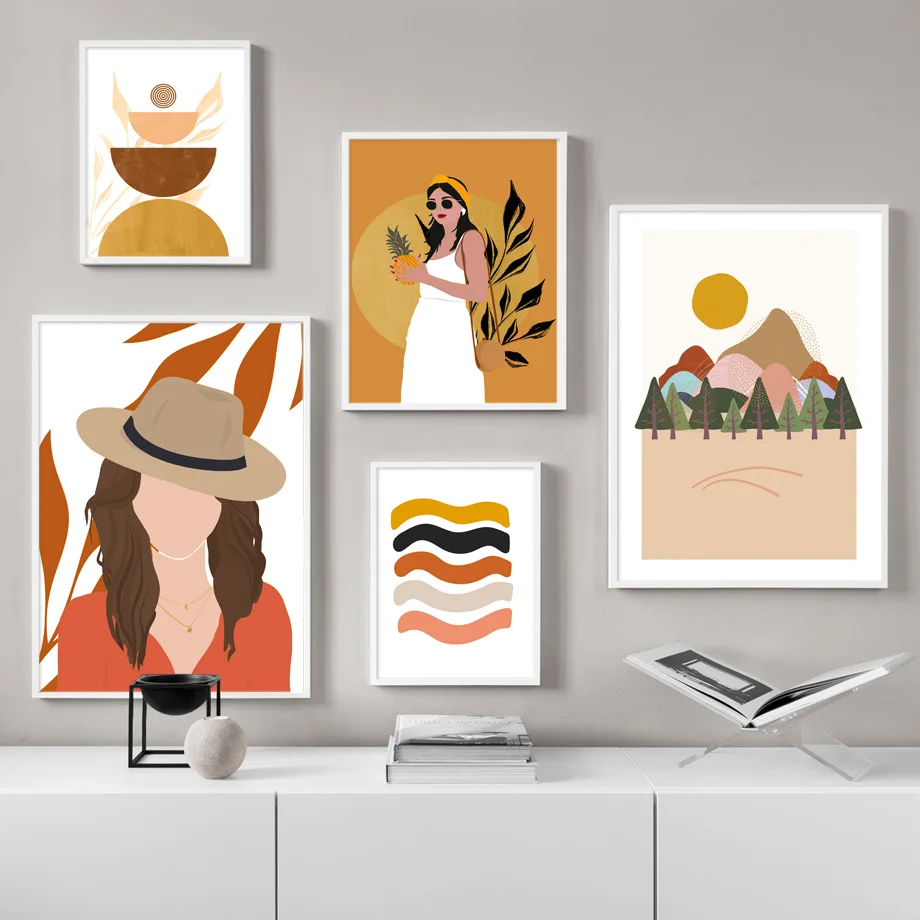Абстрактные разноцветные скандинавские постеры с изображением девуш...