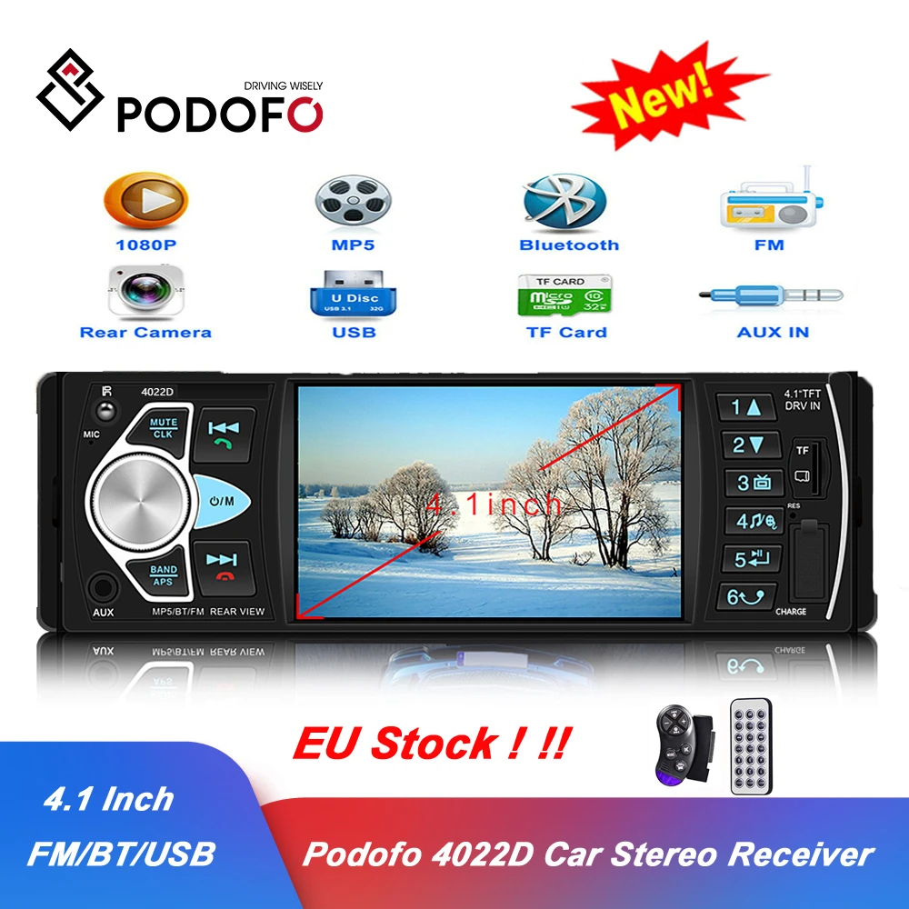Podofo4.1 дюймов 1 Din автомобильное радио Авто Аудио Стерео Авторадио Bluetooth Поддержка камеры заднего вида USB рулевое колесо дистанционное управление