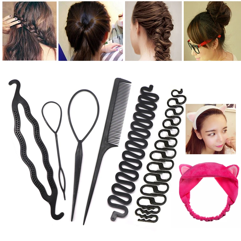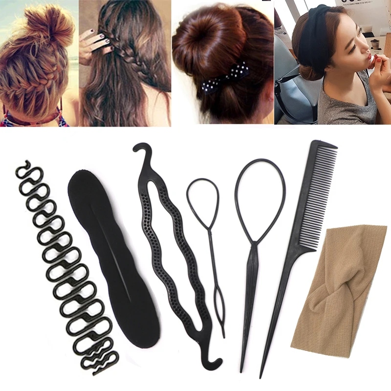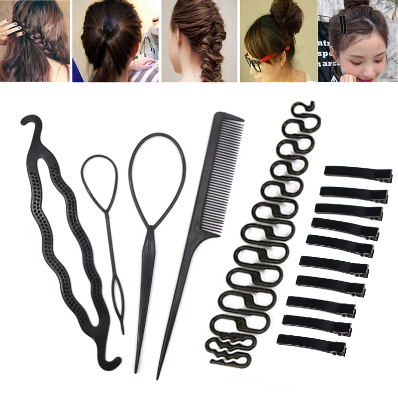 Мульти Стиль Сделай Сам DIY бигуди для волос Стиль набор профессиональных Для женщин пончик для волос Плетение Твист волос заколка с диском тянуть заколки для волос аксессуары для волос Инструменты