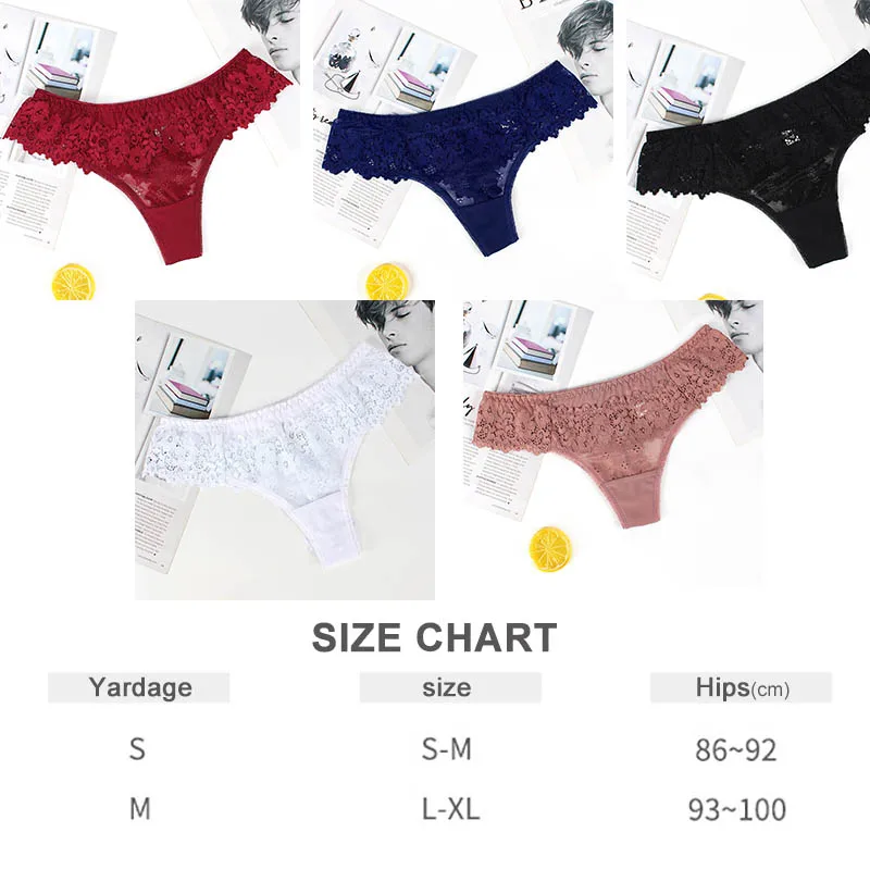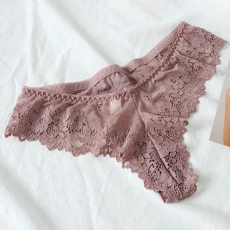 Трусики-стринги женские, однотонные, с заниженной талией, дышащие, кружевные, удобные, 1 шт.
