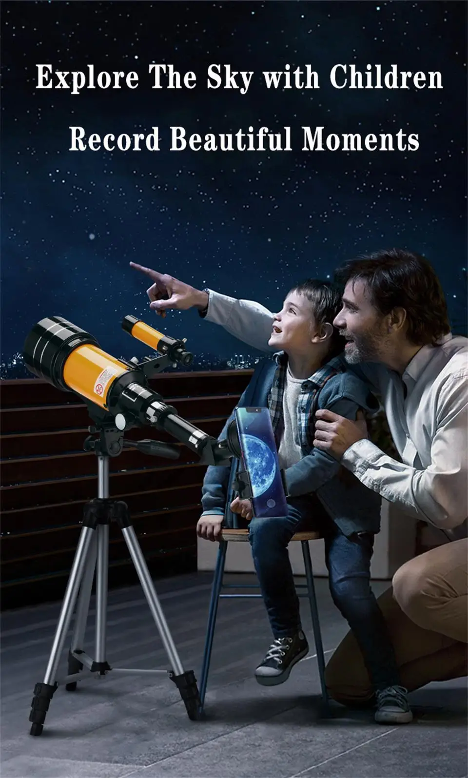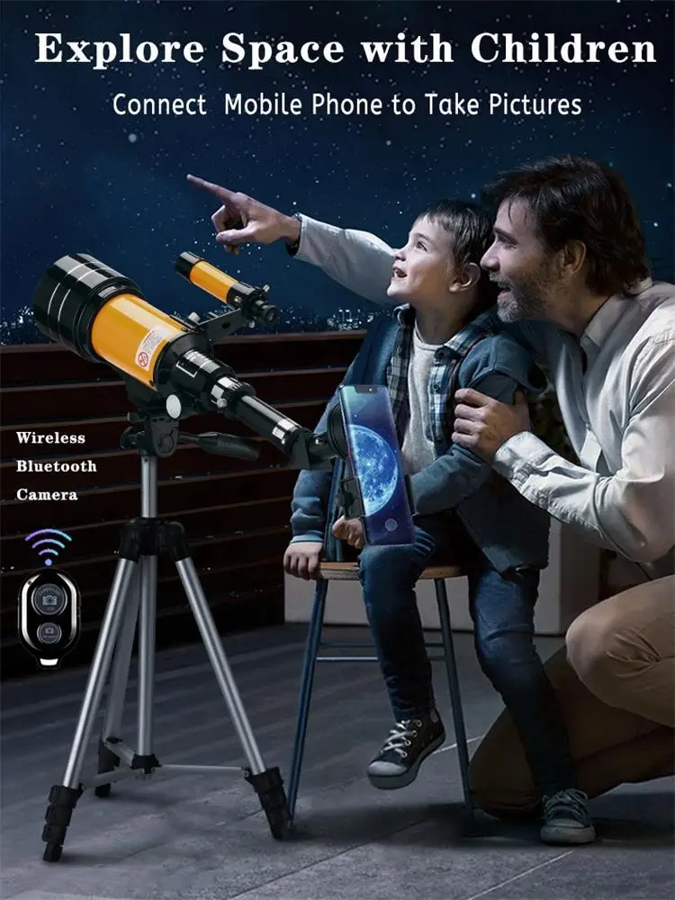 Размер телескопа компактный, и вы можете взять его в любом месте, будь то ночной кемпинг, пешие прогулки или просто роуминг по парку или долгий Драйв ночью и размещение телескопа на машине ночью, чтобы увидеть луну. Вы можете использовать для просмотра диких животных, птиц или звезд. Он поставляется с штативом для стабильности во время использования телескопа