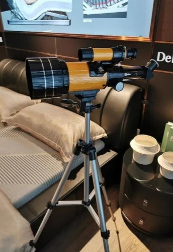 Прибыл очень быстро, товар был хорошо упакован пузырчатой бумагой, упаковка почти не изменилась. Я думаю, что штатив должен быть изготовлен из алюминия, легкий, но стабильный, и может быть растянут. Телескоп высокого качества, удовлетворен покупками.