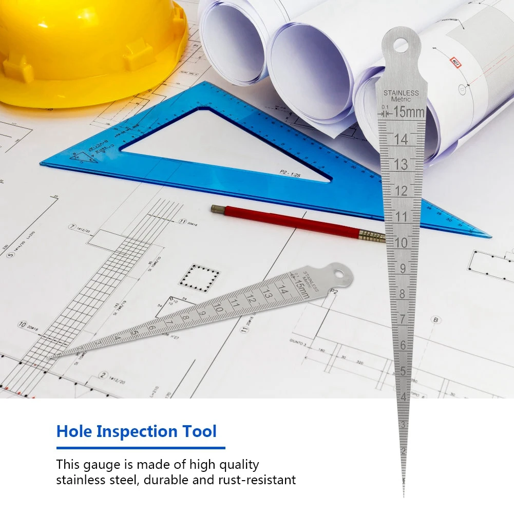 Двусторонний клиновый щуп 0-15 мм, линейка из нержавеющей стали, конусный датчик для сварки, прибор для измерения диафрагмы, отверстие, измерительный инструмент