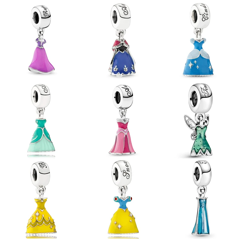 925 Серебро кулон ювелирные украшения эмаль принцесса платье, очаровательный, подрходит к оригиналу Pandora, браслет из бусин подарок делая для женщин